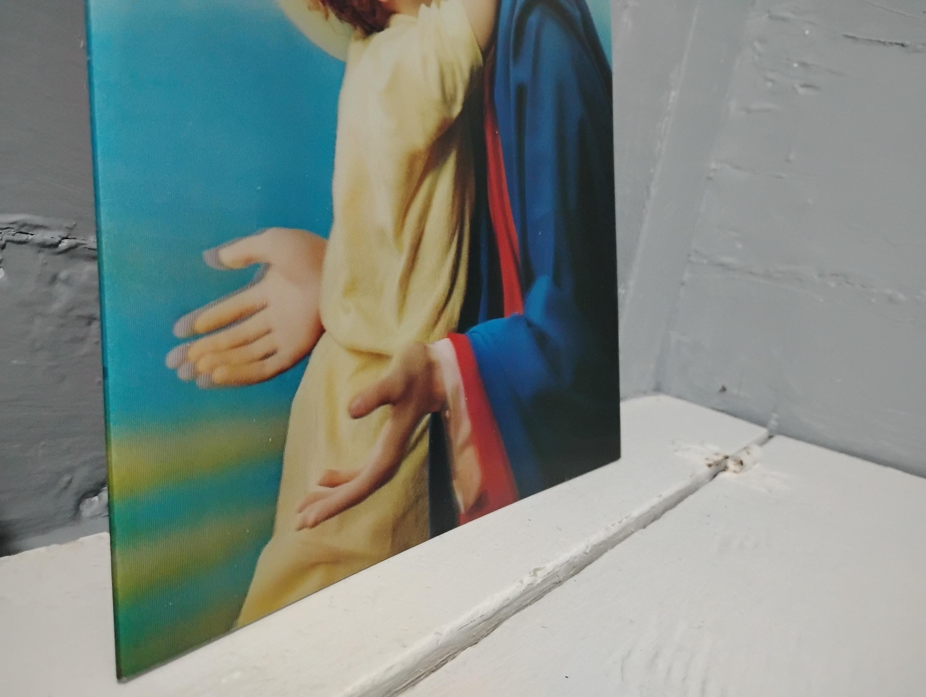 Vintage Religious Art Mary and Jesus 3D Holographic Portrait Wall Art Statement Piece Christianity Photo Prop RhymeswithDaughter